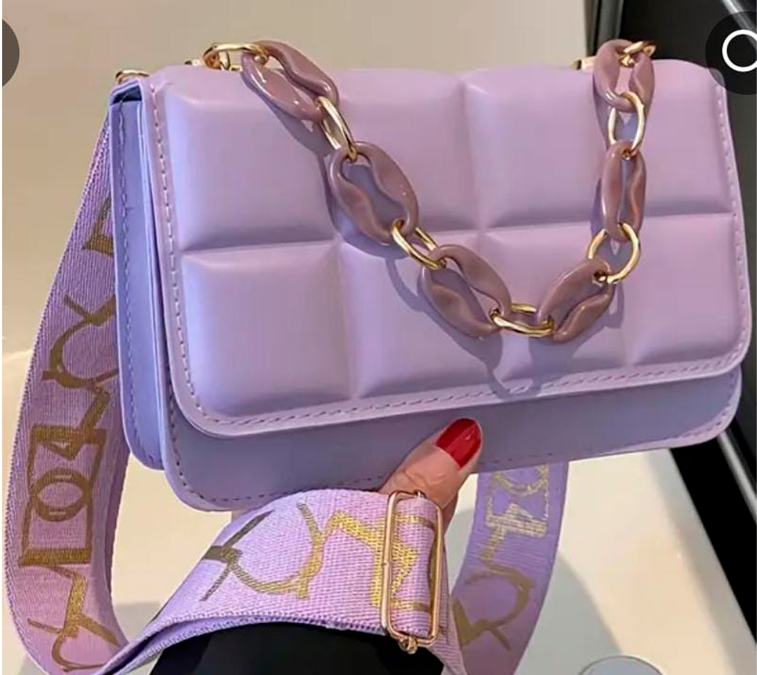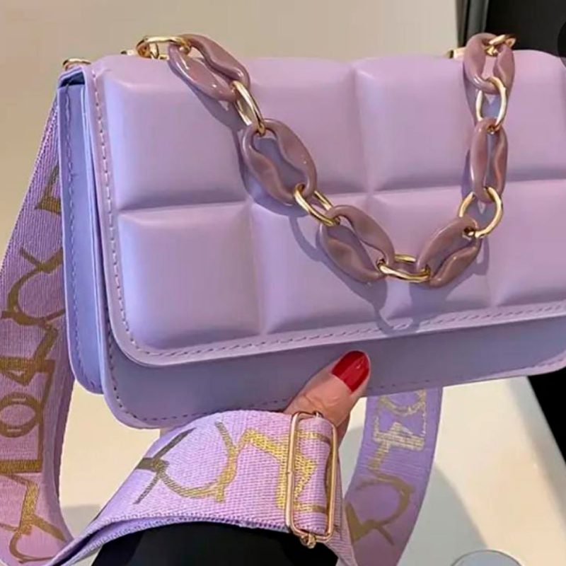 S/50.00El precio original era: S/50.00.S/40.00El precio actual es: S/40.00.Bolso Mensajero Acolchado Glam Violet
